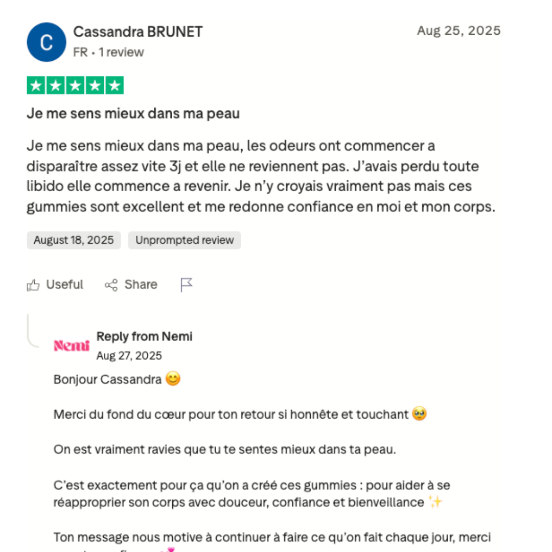 Favorise une lubrification naturelle et réduit les inconforts, transformant vos moments intimes en expériences agréables, tout en vous rendant irrésistible.