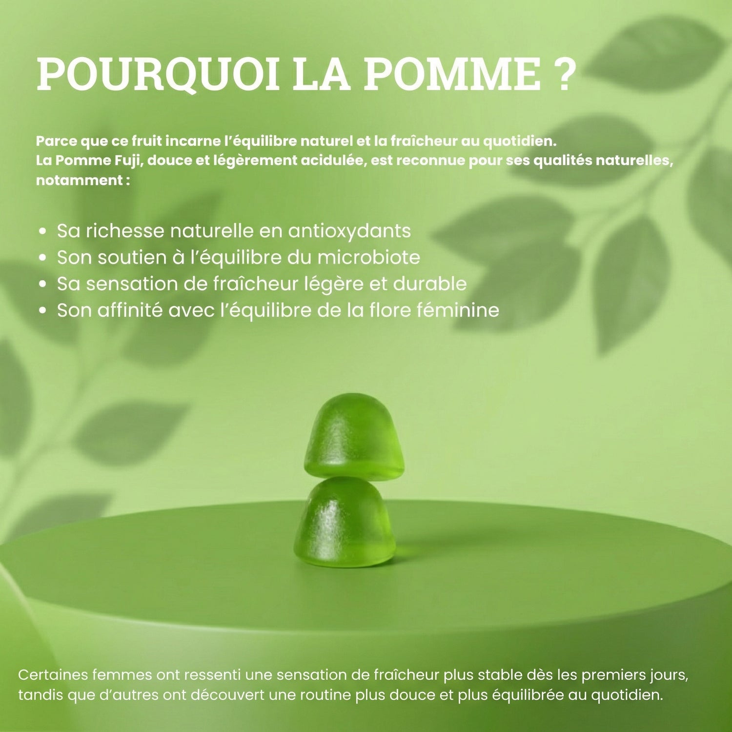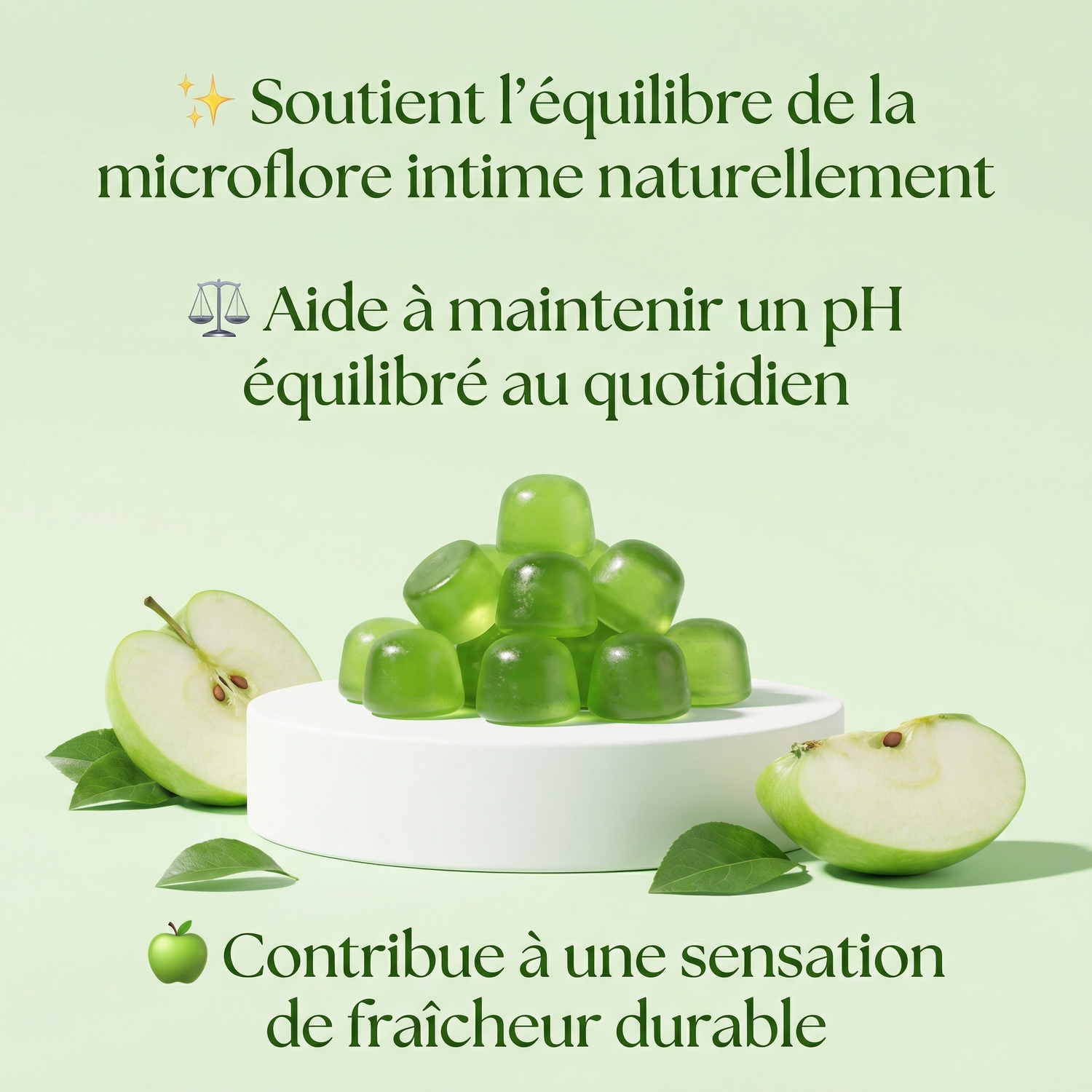 Gummies à la saveur fraîche et douce de pomme pour un équilibre intime quotidien et durable